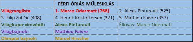 Azért valljuk be, ha nem Odermatt nyer, már az is kisebb szenzáció lenne, ha pedig nem az utána felsorolt hármas „ugrana be” helyette, hasonlóan. De épp a tavalyi világbajnokságon is ez történt. Pinturault nagy esélyesként esett ki, és megsem Odermatt, hanem egy másik francia, Mathieu Faivre lépett a helyébe. Az addig azért néha dobogóra lépő síző egycsapásra felvette a fonalat, folyamatosan dobogóra állt a szezon végén. Idén viszont visszaszürkült a mezőnybe, de adelbodeni 5. helye után nem kizárt, hogy most is épp egy világversenyen villan fel váratlanul. Tavaly ilyenkor Filip Zubčić nagy reménysége volt a horvátoknak, hogy Kostelićék után ismét világbajnoki aranyat hoz el nekik. Idén viszont Zubčić szenved óriásban, top10 vége felé ér el helyezéseket. Beszédes, hogy jobb eredményeket szállított a télen eddigi második számában, műlesiklásban.
