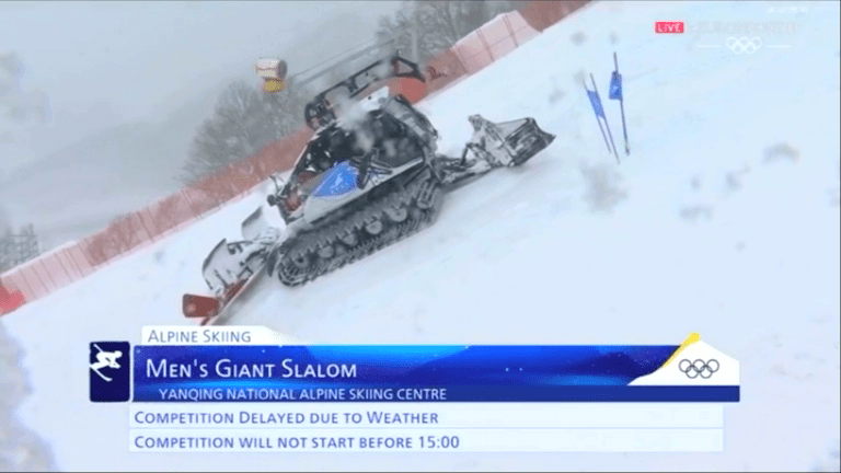Jelenleg várjuk, hogy a technikailag bizonyára remekül ellátott (na, ezt tényleg nem vitatjuk) és kiválóan képzett (hááát…) pályamunkások eltakarítsák a havat a férfi óriás-műlesiklás második futama előtt. A kérdés csak az: miért a két futam között jutott ez eszükbe? Helyi idő szerint 10:15-kor indult az első futam. Mi akadályozta, hogy kora hajnaltól a pályát takarítsák? Egy jó kis kommunista szombat aligha túlzott elvárás a Népköztársaságban, még vasárnap sem.