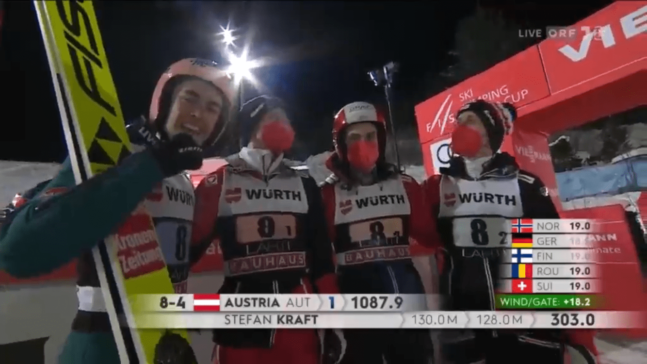 A vége végül hasonló volt, mint az Olimpián: Ausztria hátrányból megfordította az állást Szlovéniával szemben. Stefan Kraft 128 méteres ugrást tudott bemutatni – ezzel egyébként messze ő van a legjobb formában Lahtiban –, míg Peter Prevc (120,5m) kicsit elizgulta a végét. Ezzel Ausztria újabb csapatversenyt nyert meg a szezonban, méghozzá nem is a legerősebb összeállításában!
