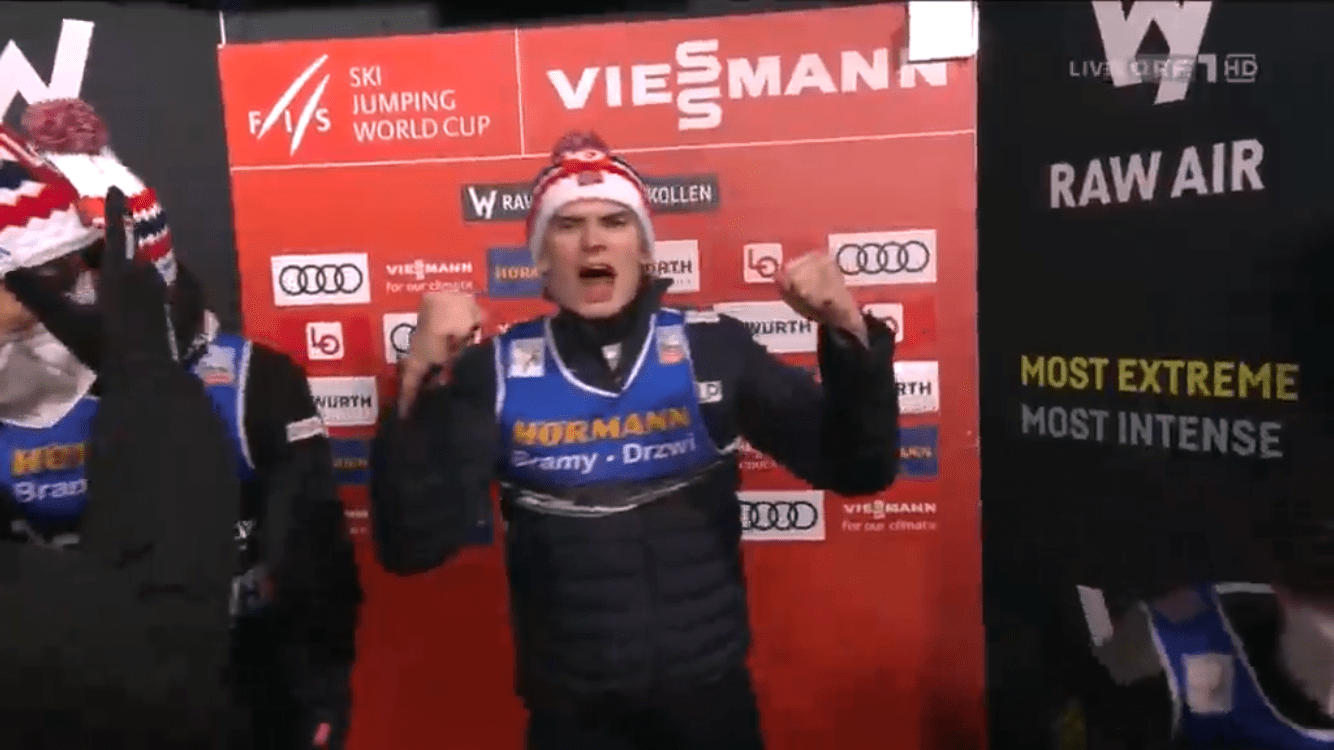 Markus Eisenbichler azonban nem hibázott. 130 méterrel azt meg tudta akadályozni, hogy ne legyen tiszta norvég dobogó, de a győzelmet nem tudta Lindvik elöl elvenni.