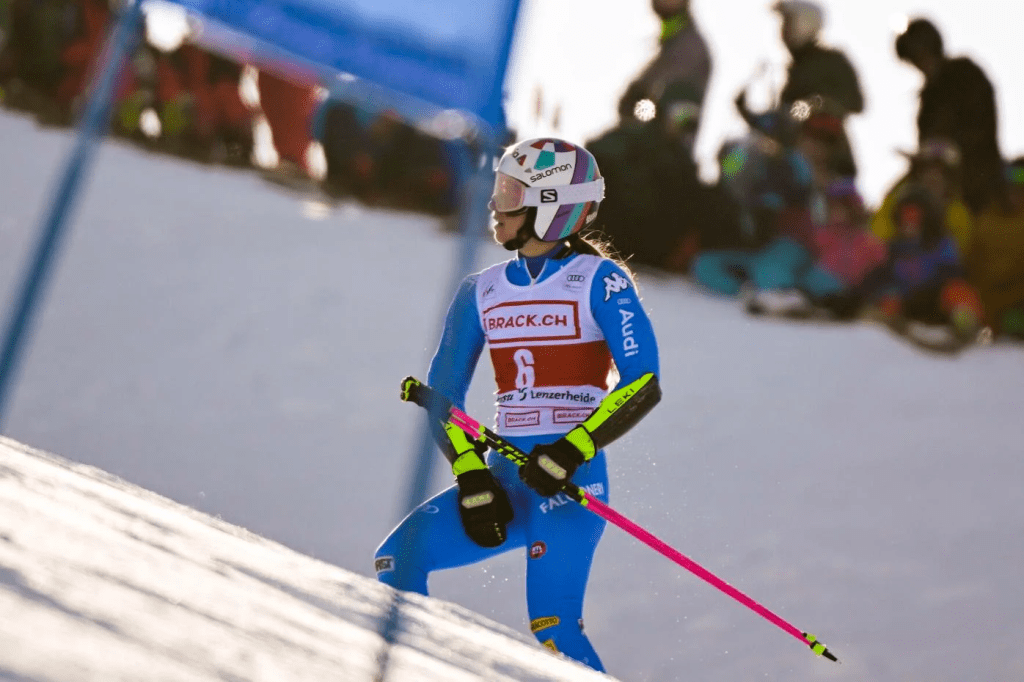 Wendy Holdener (9.) és az utána következő Elena Curtoni (10.) már kellő tapasztalattal a tarsolyban oldották meg a meredeket. Simán leértek, még ha hátrányuk okán vérmes reményeik nem is lehettek. Ana Bucik, majd Valérie Grenier igen korán búcsúzott. Mindketten, meg még nagyon sokan Bassino hibájába estek bele. Maria Therese Tviberg (13.) nem tudta a lépést tartani a legjobbakkal, s ez nem a még mindig tökéletes állapotnak örvendő pálya hibája. Thea Louise Stjernesund (19.) a sereghajtó pozíciót örökölte meg a lengyel lánytól. Camille Rast (16.) igyekezte megmutatni a hazai közönségnek, mit tud. Meglátogatta a havat, de valahogy befűzte magát. Kockázat nélkül nincs nyereség, mint ahogy nagy rontással sem.