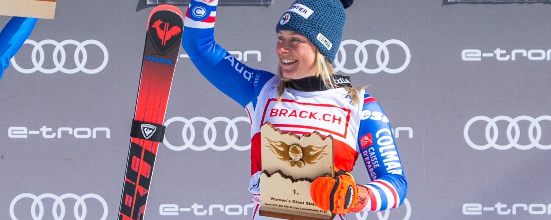 Tessa Worley (1.) bő nyolc tized előny birtokában vágott neki a pályának, de ő már a győzelemre is karnyújtásnyira volt. Bár Brignone űrsízésére ő sem tudott válasszal előrukkolni. Azonban így is remekül síelt, alig akadt megingása. Előnyéből megőrzött három tizedet, és a második legjobb futammal vette át a vezetést. Nem volt verhetetlen idő, de biztonsági sízéssel esélye sem volt a hátralévő kettősnek.