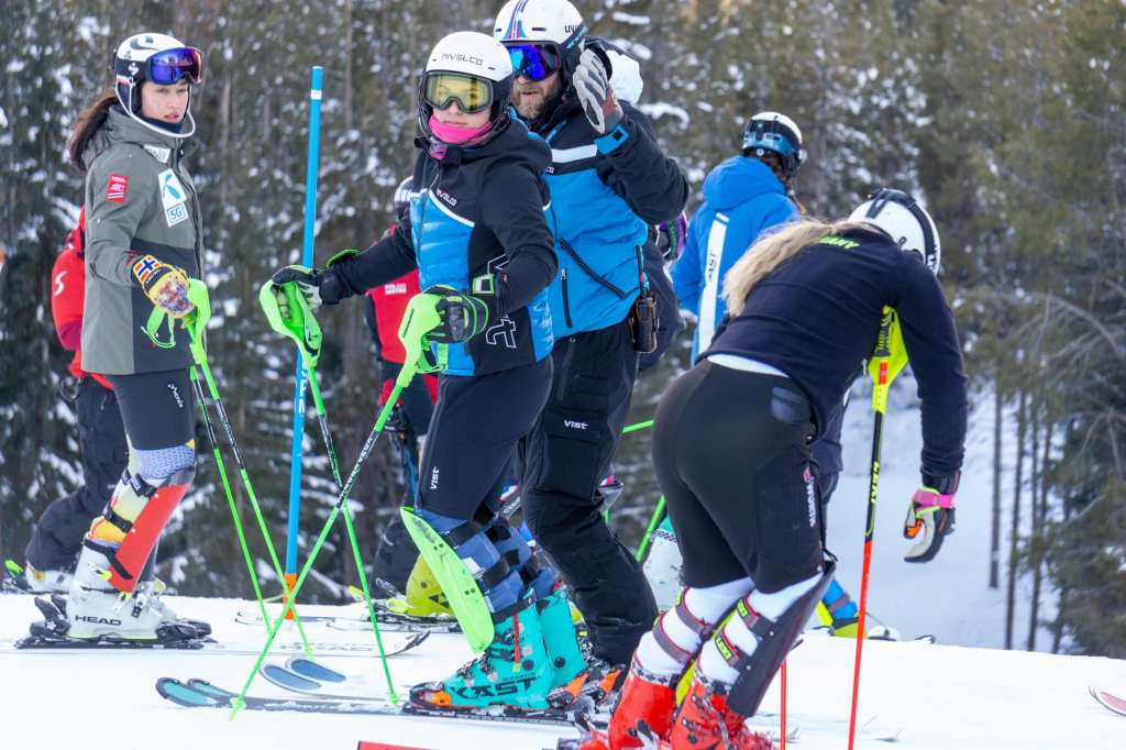 A kanadaiak leginkább Sarah Bennettben (7.) bízhattak. Lényegében előnyéből élt, már ami Noával szembeni összevetését illeti. A dobogóra neki sem volt valós esélye. Cassidy Gray (15.) óvatosabbra vette a figurát, tisztes tempóban le szeretetett volna érni, többet nem vállalt. A cseh Labastová sokadik necces szituációjából már nem tudott kikecmeregni, őt is a sorozóknál érte el a végzet. Emma Aicher volt a verseny favoritja, ami érződött is görcsös mozgását. Másodpercen túli előnyéből illet volna valamicskét megőriznie. Nagyjából a felét a meredeken leadta, amit nyilván érzékelt, mert a lankás átkötőn ritmust próbált váltani. Ennek két késve vett kapu, majd kiesés lett a vége. Lamure lassan dörzsölhette tenyerét…