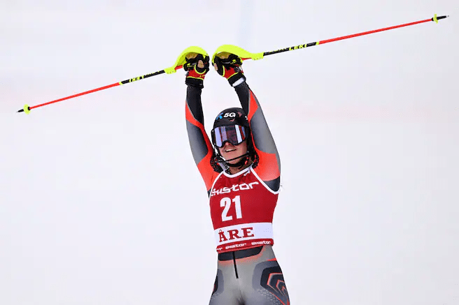 Kisebb meglepetésre Katharina Liensberger győzelmével zárult a hölgyek Åréban tartott műlesiklása. Az osztrák az ötödik helyről ugrott előre a győzelemig, miután a második futamban Shiffrint és Vlhovát is átugrotta. Utóbbi viszont 56 pontra, tovább csökkentette lemaradását összetettben. Az első futam legjobbjai közül Swenn-Larsson kiesett, míg Dürr az olimpia után most sem síelt tökéletesen vezető helyről. A finisben látott sok rontásnak Mina Fürst Holtmann és Michelle Gisin is örülhettek, akik így felléphettek a dobogóra Liensberger mögött.