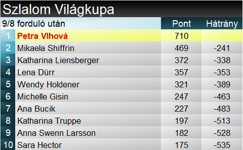 Az összetett ennél izgalmasabban nem alakulhatott volna, Vlhová 21 pontot hozott Shiffrinen, ezzel az amerikai előny 56 pont a világkupa-döntő előtt. Azaz kettejük küzdelme továbbra is teljesen nyitott, adott esetében lehet, hogy a jövő vasárnapi verseny végéig sem hirdethetünk végeredményt.