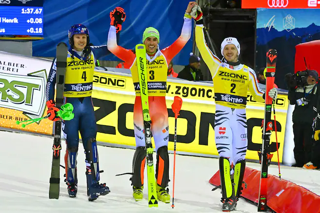 Daniel Yule a madonnai lejtő királya. Pályafutása öt győzelméből hármat szerzett ezen a helyszínen. Henrik Kristoffersen vasárnap óta harmadszor maradt le egy helyezéssel a győzelemről. Összességében 76. alkalommal állt dobogón. Linus Straßer 9. alkalommal végzett a legjobb háromban, amiből 6 verseny volt műlesiklás.