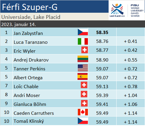 Jan Zabystřan neve volt a legismertebb a férfi mezőnyben, aranyérme ennek megfelelően nem volt nagy meglepetés, a holnapi alpesi összetettben aligha lehet őt megverni. A lányoknál Fabiana Dorigo sikerét hozta a Szuper-G, amin a magyar lányok szépen helytálltak.