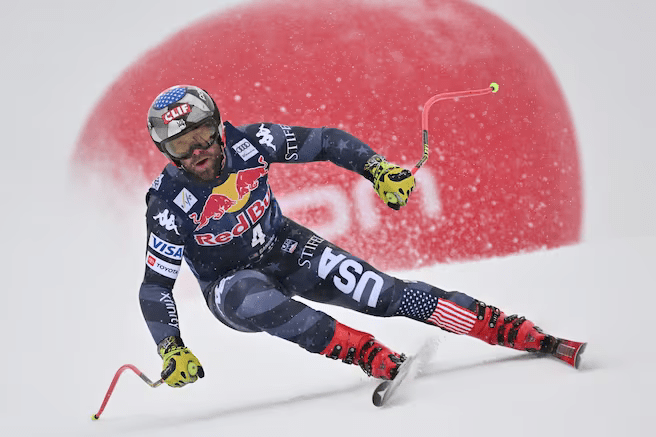 Travis Ganong (3.) a konzervatívabb kezdést követően, a Karussel utáni lapos réteken hatalmas tempóval csúszott végig. Onnantól pedig megőrizte kiváló lendületét, és a Zielschusson elért újabb bődületes tempója révén komoly előnnyel állt az élre. Jared Goldberg a Hausbergig tartotta Ganongot, az ugratóról leérve elvesztette a kontrollt, háttal ért a hálóba. Szerencsére egyből mutatta, nem esett baja. Nagyjából tíz perc kényszerszünet után indulhatott egy újabb amerikai, Ryan Cochran-Siegle (20.). A Steilhangot elhibázta, és az itteni lassulás megalapozta az eleve lassabb futamot.