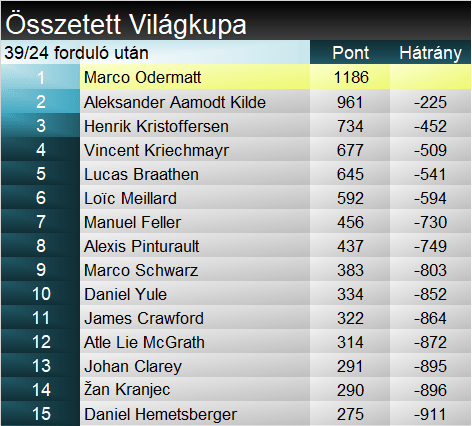 Az üldözők, Kristoffersen és Yule mai hibájával Braathen lélegzetvételnyi előnyhöz jutott a szakági élen, de még további 3 forduló van vissza a szezonból. Az összetett élen a helyzet változatlan.