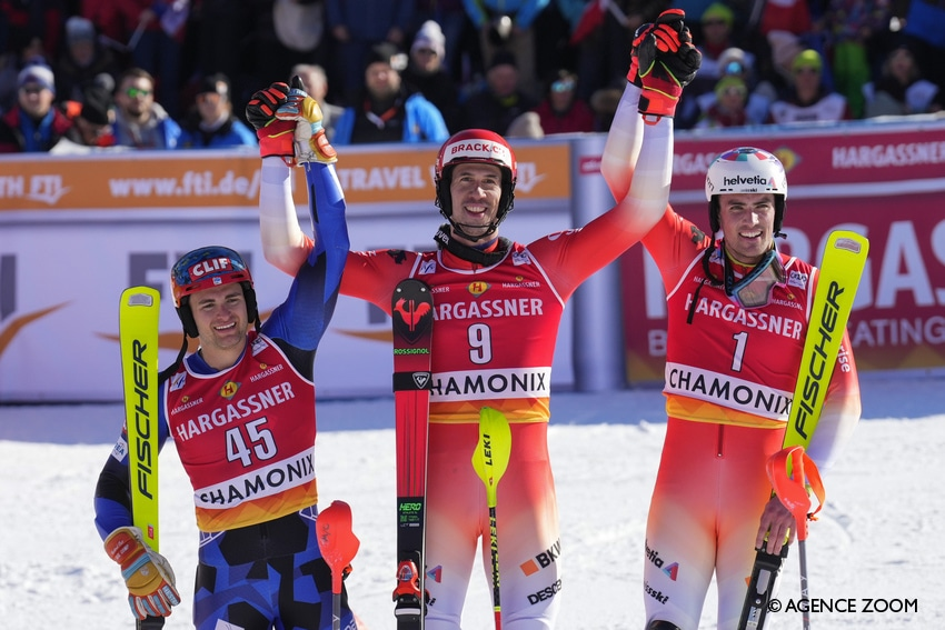 Ramon Zenhäusern lassan, de biztosan felépítette magát a világbajnokság kezdetére. Mindkétszer uralta a chamonix-i lejtőt, a másodperces előny önmagáért beszélt. Az alpesi síelés történetében először állhatott dobogóra görög sportoló a Világkupában: a 45-ös rajtszámmal síző Ginnisz összesen 21 helyet javított délelőtti pozícióján. A svájciak Daniel Yule révén még egy pódiumosnak örvendhettek. A délelőtti futamon leggyorsabb Noël sokat kockáztatott, s ezúttal sem ért célba. Mivel Kristoffersen is nullázott, a vakbélműtét után lábadozó Braathen megőrizte vezető helyét a szakági tabellán.