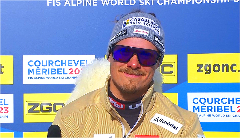A görög AJ Ginnis (2.) állt be a rajtba, valami hihetetlen sporttörténelemben reménykedve. A meredeken viszont rendkívül darabosan síelt. Az utolsó szektorra viszont még egálban kanyarodhatott, és hihetetlen nagyot hajrázva megszerezte a pillanatnyi második helyet – azaz biztos volt a görög érem! Már csak az volt a kérdés, ki lesz a világbajnok. Manuel Feller (7.) 91 százados előnnyel vágott neki a pályának, de a meredeken ennek közel fele el is tűnt. Az újabb letörésnél pedig távol került egy kaputól, már csak érméért küzdött, de végül Schwarztól is kikapott a legjobb osztrákért folyó csatában.