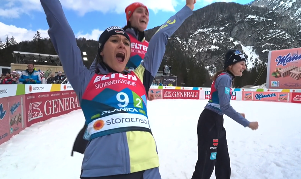 A második sorozatban aztán végül az Anna Rupprecht, Luisa Görlich, Selina Freitag mellett az egyéni győztes Katharina Althaust is soraiban tudó német válogatott nem adta ki egy pillanatra sem a kezéből a vezetést, sőt, Althausnak befejező emberként már igazán nagyot sem kellett ugrania ahhoz, hogy biztosan meglegyen az aranyérem. Amiből egyébként Althausnak személyesen ez már az ötödik(!) volt világbajnokságról (ebből a negyedik csapatban).