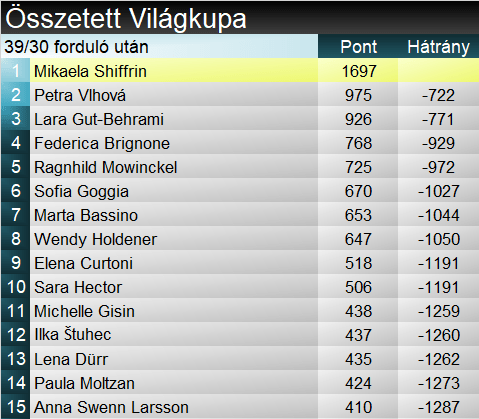 A lesiklók jövő hétvégén Kvitfjellben, az olimpiai lejtőn folytatják. Pénteken pótolják az eredetileg mára rendelt Szuper-G-t, amit szombaton egy lesiklás, majd a hét utolsó napján újabb szuperóriás követ. A lesikló szakági és az összetett minden bizonnyal matematikailag is el fog dőlni ott fent északon.