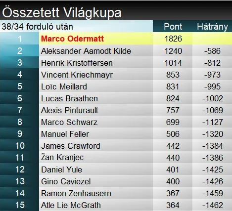 Győzelmével Marco Odermatt biztosította a szakági elsőséget óriásműlesiklásban, amivel a férfiak közt Zurbriggen és Maier után az első síző, aki a szuper-G és az óriás kis kristálygömbjével biztosítja összetett győzelmét. Kristoffersen már szintén biztos második. Ami a VK-döntős inulási jogot illeti, végül csak Thomas Tumler tudta beverekedni magát az utolsó pillanatban, a sérült Muffat-Jeandet-t kiszorítva. Kilde végül a hétvégi távolmaradása ellenére is a 25-ben maradt, így alanyi jogon is részt vehet majd a szombati versenyen. Összetettben immár matematikailag is Odermatt a szezon győztese. Itt a harmadik helyért néz ki egy esetleges csata Kristoffersen és Kriechmayr közt.