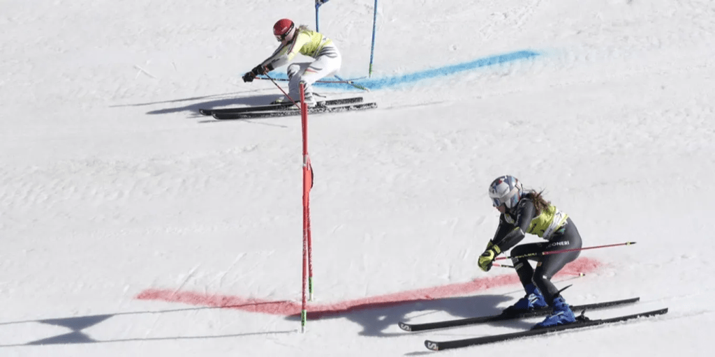 Az elődöntőben előbb Svájc-Németország meccset rendeztek. Itt Dürr csak századokkal verte Rastot, Simonet pedig elkalapálta Sandert. Ellenberger és Hilzinger késhegyre menő párharcot vívtak, a svájci győzelmével. Simonet remek ideje révén Straßernek nagyidőt kellett volna síelnie, és bár Bissiget meg is verte, Simonet idejétől bőven elmaradt, így Svájc jutott tovább a döntetlen állásból. A parallel csapatversenyeken rendre jól szereplő Norvégia egyből egy vereséggel kezdett, Ausztria ellen, igaz, Tviberg csak századokkal kapott ki Gritschtől. Haugan igen jó idővel győzött Gstrein ellen, ahogy Stjernesund is Scheibbal szemben. Így Pertl számára űridő kellett volna, de az osztrák hibázott, így Windingstad a 3 győzelmet is hozta a párharcban.