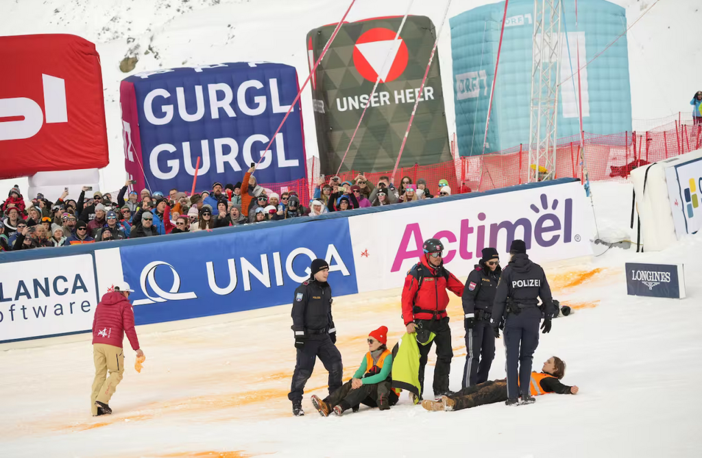 Ezután a sport helyét a politika vette át, merthogy botrányos pillanatok következtek… Klímaaktivisták rohantak be a célterületre, s valamiféle festéket szórtak a hóra. A helyi karhatalom eltávolította onnan a jóembereket, akik majdnem a felhevült idegállapotba került Kristoffersennél kiprovokáltak maguknak pár pofont. A közönség pedig szintén melegebb éghajlatra küldte a delikvenseket. Összességében 10 perces közjáték után síelhetett le Steen Olsen (18. – 26. délután idő). Meglátszott rutintalansága, a váratlan kényszerszünet után be nem melegedve vergődött le a lejtőn. Jelentősen hátraesett. Meillard pedig idejekorán kapura lépett, frusztrációját ő sem rejtette véka alá.