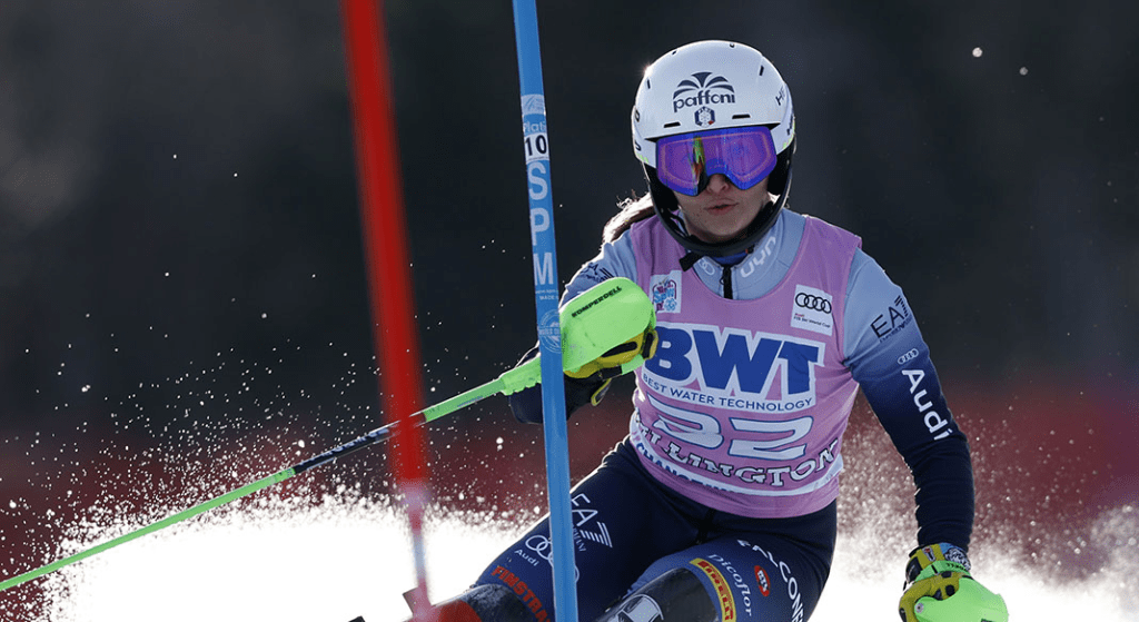 Továbbra is Marta Rosetti vezetett, amikor Leona Popović (30.) következett, már másodperc fölötti előnnyel. A nagy elán, amivel a horvát nekirontott a pályának, megbosszulta magát. Három kapun keresztül vitte magával egy hatalmas fékezés következményeit, ami miatt senkit nem tudott megelőzni. Wendy Holdener (3.) kis híján már az első kapunál az oldalára borult, de folyatatni tudta. Ugyan futama közel sem volt tiszta, de előnyével gazdálkodni tudott, és megszakította az olasz hosszantartó menetelését.