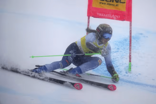 A rossz látási viszonyokkal tegnap után ma is eredményesen dacolt Federica Brignone (1.). Mit sem törődve a szakadó hóeséssel, remekül vezette léceit, ráadásul sebességére sem lehetett panasz. Direz második futamos idejét is felülmúlva állt az élre. Zrinka Ljutić (7.) korrekt kezdést követően a letörés körül hagyott sokat a pályában. Összességében azonban nem szégyenkezhetett, első alkalommal zárt óriásban a legjobb 10 között. Marta Bassino (9.) is sokat vesztett a letörés körül kialakuló egyre inkább átláthatatlan hóesésnek – nemhogy a dobogót nem tudta célba venni, a top10-ért kellett küzdenie.