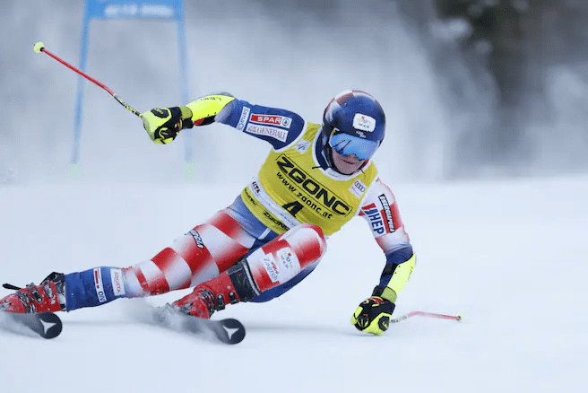 A tegnapi nap visszavágója is következhetett volna, de ezúttal Filip Zubčićnak (4.) komoly hátrányból kellett támadnia. A horvát láthatóan ezzel a szellemiséggel is vágott neki a pályának, de ez ma délután nem bizonyult kifizetődőnek. A letörésig akkora hátrányt szedett össze, amit védjegyének számító rendkívüli meredekével sem tudott visszafordítani. Marco Odermatt (1.) egymásodperces előnnyel rendelkezett összetettbeli riválisával szemben, amikor a rajtból elrugaszkodott. A letörésig ugyan kissé visszafogottan síelt, és lassan, de közeledett ár Schwarz, a meredekre érve viszont parádézott, és összességében még növelte is előnyét, mire a célba ért!