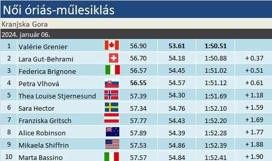 Az újév első Világkupa-versenyét rendezték meg szombaton óriásban, a nyugat-szlovéniai Kranjska Gorán. A Zlata lisica, azaz az Arany róka trófeáért csatoltak léceket a hölgyek, a hétvégén először óriásban. A legendás verseny egy nem kevésbé nagy múltú helyszínhez, Mariborhoz kötődik. A magyar határ közeli városban rendezték a nők számára eddig a legtöbb óriást, illetve szlalomot. Az egyre enyhébb időjárás azonban nem kímélte Maribort: 2018 óta mindössze egyszer lehetett a versenyeket az eredeti helyszínen megrendezni. A többi alkalommal Kranjska Gora ugrott be Maribor helyett. A váltás egyébként népszerűnek és látványosnak bizonyult. A Kranjska Gora-i Podkoren lejtő a férfi mezőnyben is az egyik legnagyobb kihívást jelentő óriásműlesikló pálya, Adelbodennel és Alta Badiával szokás egy lapon emlegetni. A női versenynaptárban is így a legnehezebb pályává lépett elő óriás fronton.