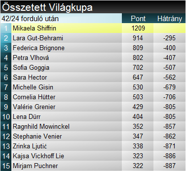 Pontot szerzett egyébként Nadine Fest (31-essel a 29.), Elvedina Muzaferija (32-essel a 25.), Lena Wechner (33-assal a 30.), Keely Cashman (34-essel a 24.), Jasmina Suter (35-össel a 27.), Karen Clément (38-assal a 25.), valamint Teresa Runggaldier (42-essel a 20.). A névazonosság nem a véletlen műve, a vb-ezüstérmes Peter Runggaldier lányáról van szó.