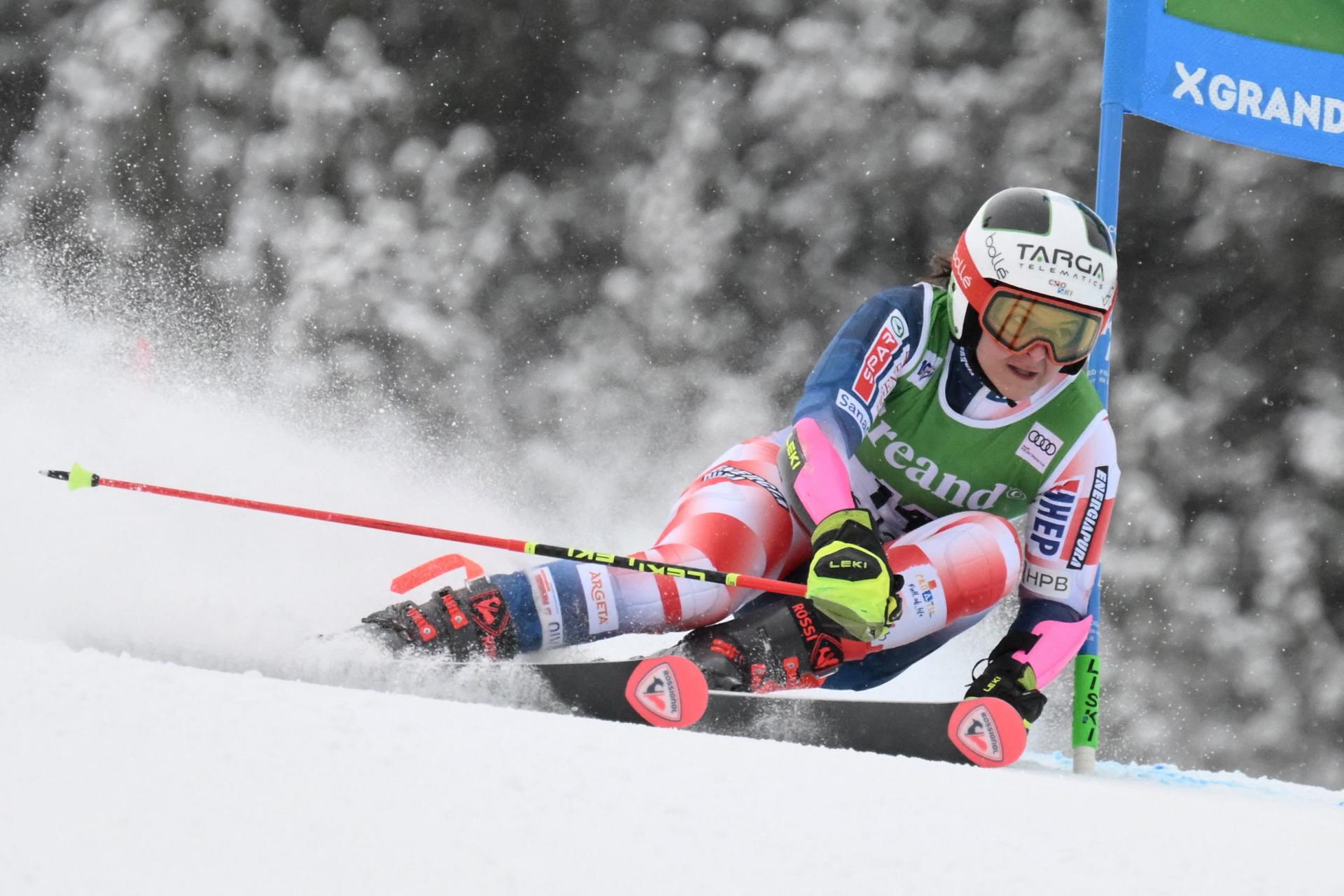 Már-már meghökkentő látványként hatott, hogy hóesésben, fehér miliőben síelhettek a lányok. A borús idő és az égi áldás nehezítő körülményként jelentkezett. Marta Bassino (1.) jószerivel versenyről versenyre esik vissza a ranglistán. Bizonytalanságban délelőtt sem volt hiány, sok volt a késve vett kapuvétel a három évvel ezelőtti Vk- győztes részéről. Sebessége azonban végig stabil volt, a záró kulcskanyarokat pedig ő oldotta meg a legjobban. Thea Louise Stjernesund (4.) a letörést megelőzően még jobban állt az olasznál, aztán elég volt pár keresztbeállított léc, ami épp elég volt a szoros vereséghez. Federica Brignone (2.) menetében a kanyarátmenetek rendre dadogtak, ez a magas sebességnek volt betudható. Végsebessége azért ütött, 3 századdal szorult honfitársa mögé. Ragnhild Mowinckel (7.) mozgása teljesen szétesett a meredeken, a pálya végén a tapadással is meggyűlt a baja.