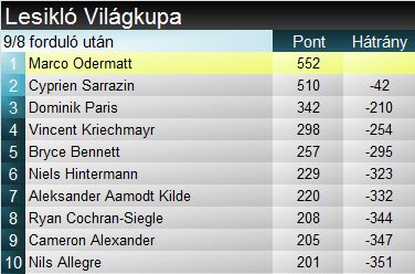 - Sarrazin második, Odermatt legfeljebb 6.;