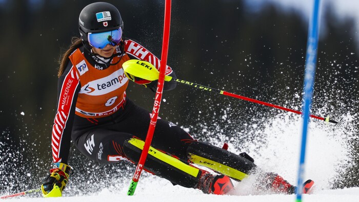 Mikaela Shiffrin (2.) a köztes laposabb részen, valamint szokatlan módon a legvégén maradt el némiképp a jobbik svédtől. A meredek technikás részen utánozhatatlanul nyomta. A 11 százados hátránytól persze nem kellett megrettennie. Zrinka Ljutić (3.) épp a lankán fogott valamicskét az etalonidőn, a meredeken talán kicsit több élt használt a szükségesnél. Hattizedes elmaradással a dobogós helyre azért simán jó volt a horvát. Michelle Gisin (15.) nem kedveli a haladósabb pályákat, sok volt nála a rendezetlen ívváltás. Két másodpercen túl zárt, senkit nem előzött meg – ezzel lemondhatott amúgy is marginális esélyéről, ami a szezonbeli TOP3-at illeti. (Győzelem + Dürr- nullázás kellett volna hozzá.)