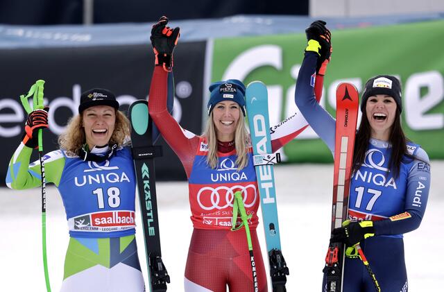 Cornelia Hütter több mint 6 év elteltével győzött újra lesiklásban a Világkupán. Ez összességében a hatodik VK- sikere, míg dobogót tekintve 15-nél tart a királyszámban. Ilka Štuhec 14. pódiumát jegyezte ma, az elsőt ezen a télen. Igazolta, hogy 33 évesen is képes egy-egy nap megcsillantani versenyképességét, továbbá realizálta azon vélekedést, hogy a saalbachi vb-lejtő kedvezhet stílusának. A szlovénhoz hasonlóan Nicol Delago dobogója sem volt benne a pakliban, elvégre altenmarkti harmadik helye óta a TOP15 is jó szereplésnek számított tőle. Lesiklásban negyedik, összességében ötödik alkalomban végzett a legjobb három közt.