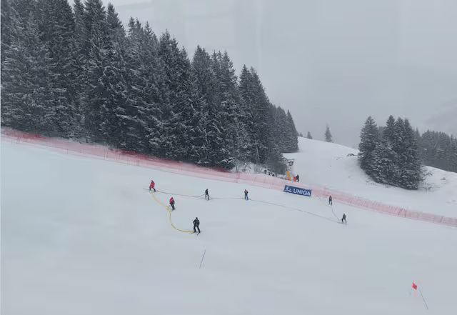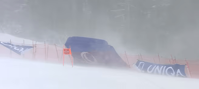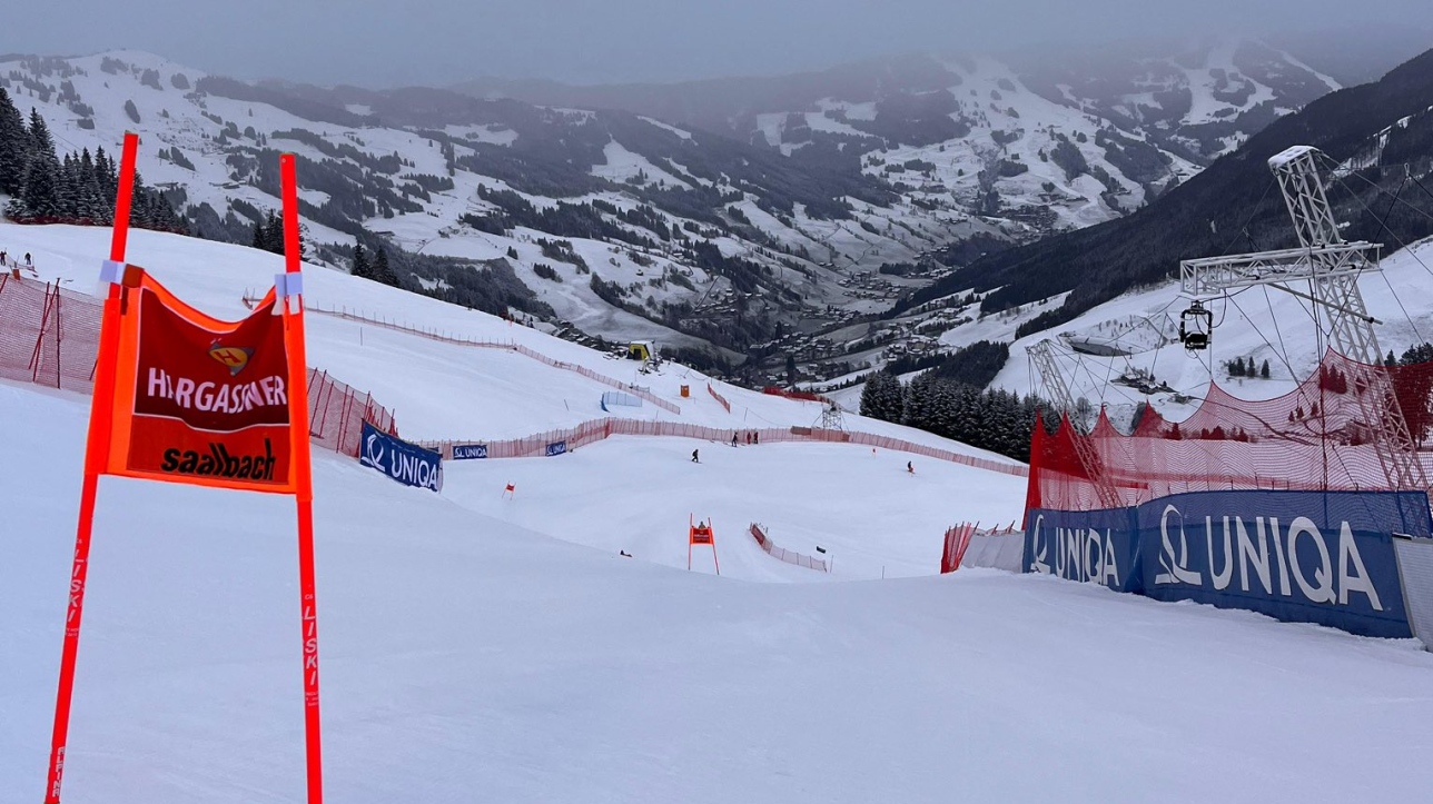Éjszaka nagymennyiségű havazás érkezett Saalbachba. (Ennek előszelét a női versenyen megtapasztalhattuk.) A pályamunkások minden erejüket latba téve dolgoztak reggel óta, hogy Világkupa-színvonalra, vagy legalábbis elfogadható szintre alakítsák a lejtőt. Emiatt halasztotta a zsűri első körben 12:30-ra a rajtot. Csakhogy időközben beborult az égbolt, és a szél is felerősödött, vadul tépdeste a reklámmolinókat és a kapukat. A felelős team utoljára 12:30-kor gyűlt össze, s a törlés mellett határozott. A sízők testi épsége mindenek felett állt, s ha még reszkíroztak volna egy nagyot, egy unfair verseny akkor sem szolgálta volna a sport érdekét.