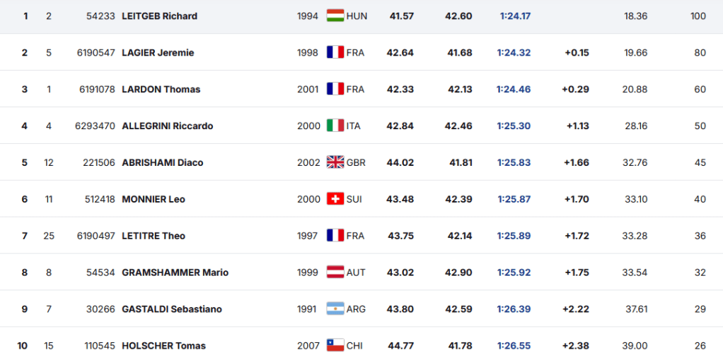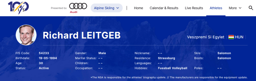 Felvetődhet a kérdés, miként leltünk rá az információra? Az olimpia kezdetén kaptunk egy fülest, hogy a korábbi Világkupa-induló, de 3 éve visszavonult Richard Leitgeb neve mellett megjelent a „HUN” felirat és a magyar zászlócska a Nemzetközi Sí Szövetség statisztikai rendszerében. Ilyentájt eleve figyelni szoktuk a déli félteke kontinentális sorozatait, hátha megütközik szemünk egy-két potenciális tehetségen. Gondoljunk például két esztendővel ezelőtt Lara Colturi berobbanására.