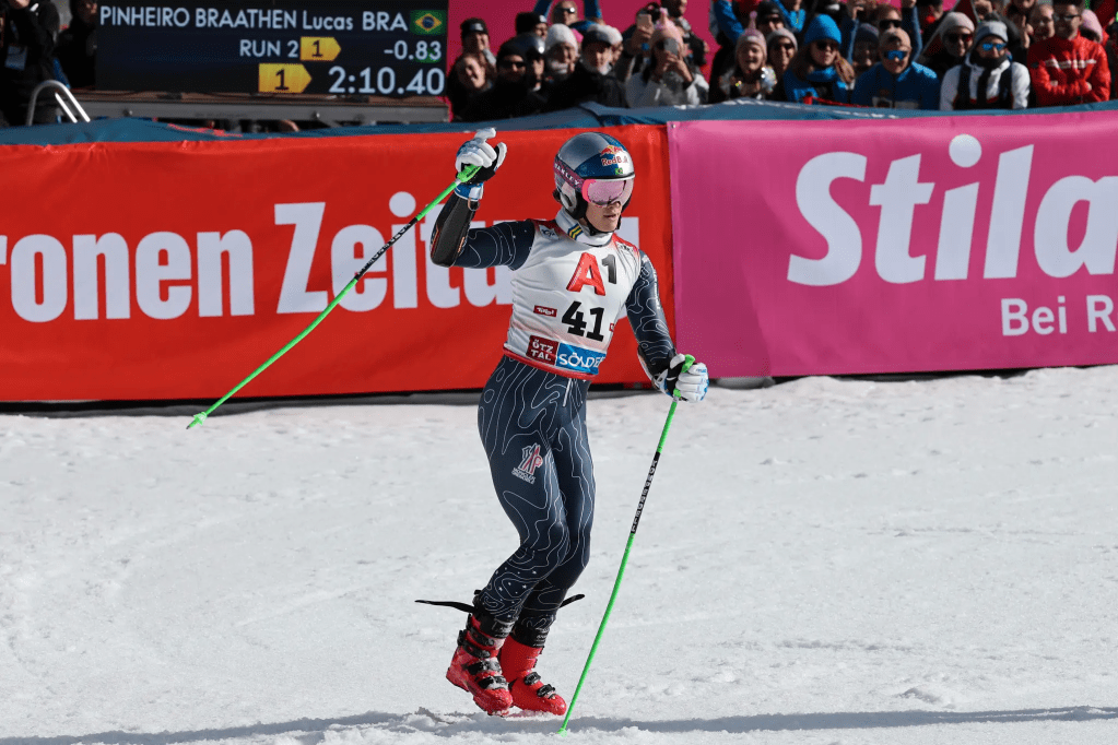 Az a bődületesen ütős menet hiánycikk volt, a jelentősebb javítások inkább az időjárási helyzetnek voltak köszönhetőek. Straßer (22.) inkább menete második felére kapott erőre, veszélyt azonban sem ő, sem pedig Ford (21.) nem jelentett az elejére. Délelőtt inkább a stabilitásra fókuszált, másodjára már fitogtatta remek formáját Braathen (4.). A meredek végét leszámítva valamennyi szektorban topidőt síelt, a 8 tizedes előny egy szinte biztos TOP10-et jósolt neki. Minimum. Beindult a szamba! Stockinger (25.) bíztató kezdés után messze nem dolgozott annyit léceivel, mint brazil kollégája. Jelentősen hátrébbesett. Janutin külső lécének kötése leoldott, vélhetően a túl intenzív terhelés miatt. Anguenot (24.) menetével zárult a délutáni program első fele. A francia srác túlgondolta kissé a meredeket, amire végső soron ráment a végtempója. Egy hajszállal Hirscher mögé szorult.
