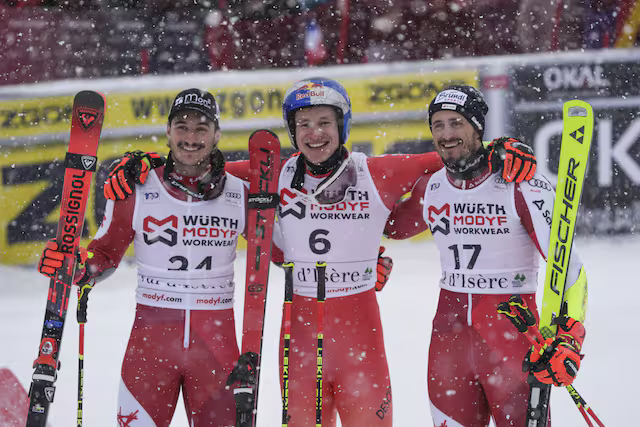 Marco Odermatt három nullázott óriás-műlesiklást követően visszatért az élre. Karrierje 29. sikerét aratta a Világkupában, ebből a 24-diket szerezte óriásban. Zsinórban negyedszerre győzött Val d’Iséreben. Patrick Feurstein először állt dobogóra a legjobbak közt, ezzel tehát beállt unokatestvére, Lukas sorába, aki múlt héten a Beaver Creek-i szuperóriáson érte el eme mérföldkövet. Korábban csak háromszor zárt a TOP10-ben. A csapatban olimpiai bajnok Stefan Brennsteiner negyedjére állt dobogón, ma nagyon közel került az első sikerhez.