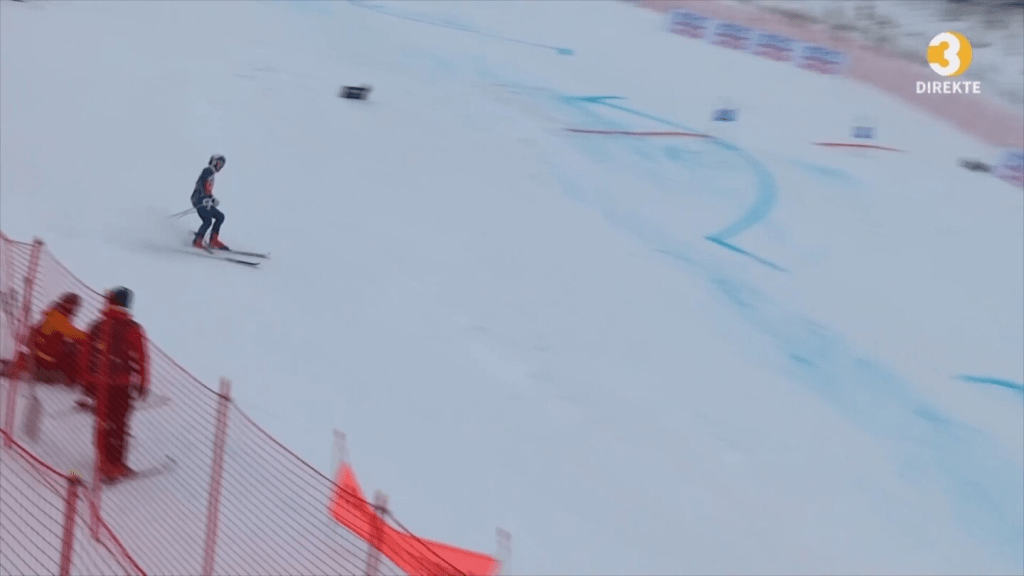 A mezőny több mint fele még fent várakozott, de nem nagyon lógott a levegőben az igazán nagy bravúr esélye. Az imbolygó köd továbbnehezítette a helyzetet. Clément Noël esése miatt röviden állt a verseny, a francia klasszis a védőhálóba katapultált, majd nem túl meggyőző módon, de saját lábán hagyta el a helyszínt. Az első vizsgálatok szerint bokasérülést szenvedett, emellett kiütötte két fogát.