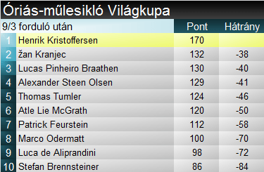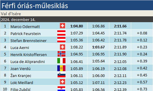 A szakágit immáron Kristoffersen vezeti, de ami Odermatt szempontjából fontosabb, belátható közelségbe került a tabella elejéhez. Legközelebb a Gran Risán csapnak össze a szakág legjobbjai, mégpedig jövő vasárnap. Holnap még rendeznek egy szlalomot.