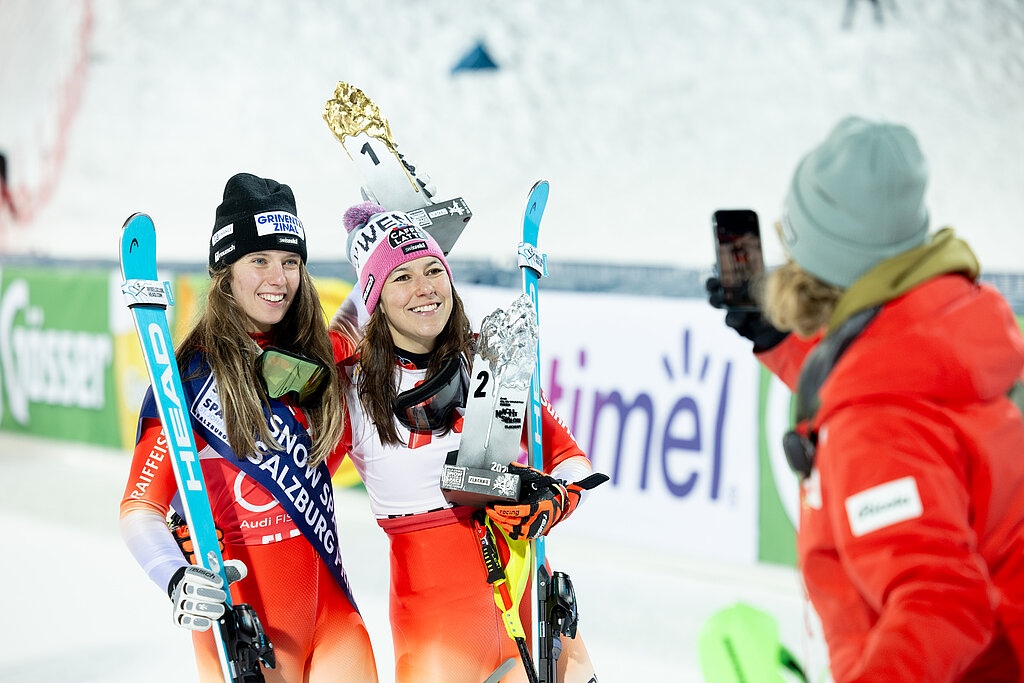 Camille Rast a lehengerlő szezonrajt után az utóbbi versenyeken kiegyensúlyozott, de dobogót nem érő versenyeket teljesített. Most azonban visszatért a pódiumra, Killington után másodszor rögtön annak tetejére. Wendy Holdener 52. dobogós helyezését érte el, a 38-at a legtechnikásabb szakágban. Idén ez harmadik dobogója. Sara Hector egy év után tért vissza szlalomdobógra, első alkalommal ugyanitt, Flachauban, egy éve végzett szinté a harmadik helyen.
