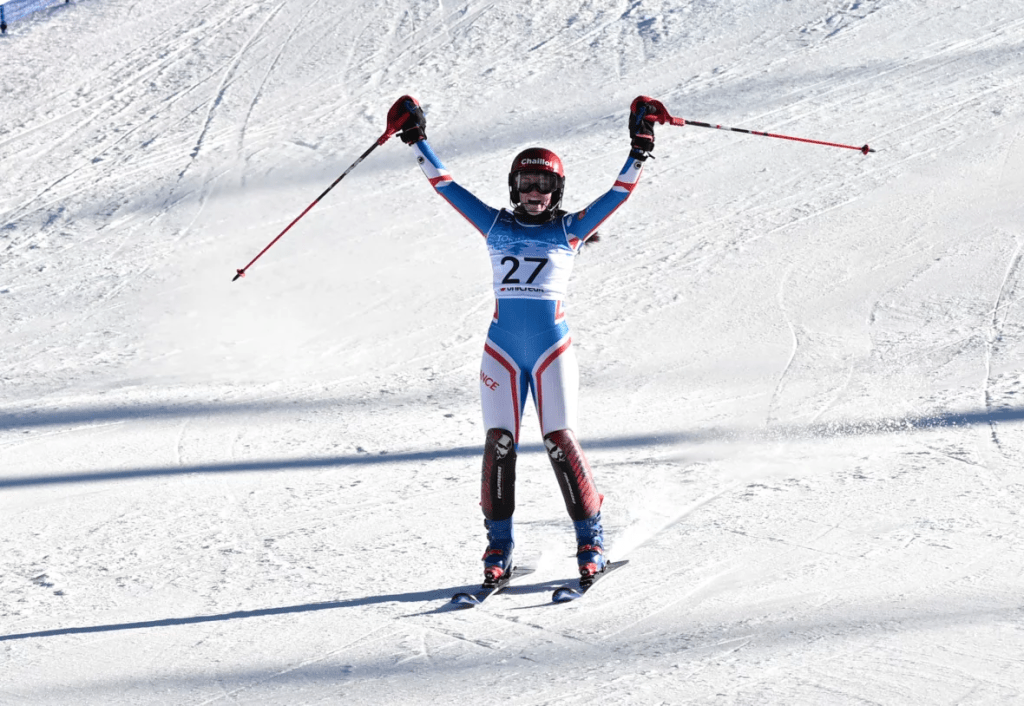 Ezután egyebek mellett svájci lányok vették birtokukba a lejtőt, de ők nem veszélyeztették az első kettő pozícióját, lévén mindannyian szlalomspecialisták voltak, továbbá hibáztak is bőségesen. Az élen a 12-es rajtszámú síző célba érkeztével történt változás. Louison Accambray (3.) kapcsán érződött először, tudja, mitől döglik a légy. Aktívan vágódott ¹, lendülete bőven felülmúlt minden korábbi sporttársáét. A másfél másodperces időkülönbség szemmel is kivehető volt.