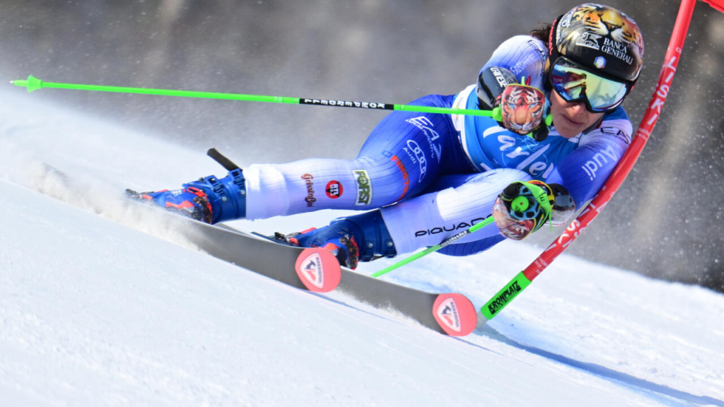 Valerie Grenier (6.) láthatóan jól mozgott saját edzője pályáján, és annak ellenére, hogy fent nem volt előnye, mégis meg tudott érkezni a fél másodperces dobogóaspiránsok bővülő táborába. Paula Moltzan (10.) a meredeket közel sem teljesítette ilyen tisztán, hátránya már másodpercen túl volt. AJ Hurt (17.) számára is a meredek jelentette a legnagyobb kihívást, de az utóbbi amerikai a végén sem tudta rendezni mozgását, és újabb késéseket kellett korrigálnia. Sofia Goggia Cortina d’Ampezzo után megpróbálkozott a mai óriással is, azonban mindössze pár kapu után túlságosan bedöntötte léceit, és oldalára borulva kiesett. Szerencsére látható volt, sérülésveszélyről nem kellett beszélni. Mina Fürst Holtmann (18.) a pálya második felén nagyon nem érzett rá, mennyi a megfelelő él, amit az ívekbe kell tenni, senkit nem előzött meg az addig leérkezők közül. A legjobb tizenötös blokkot Lara Colturi (8.) zárta. Az utóbbi pár sízőhöz képest a meredeket kisebb hátránnyal oldotta meg, és minthogy a végén sem sokalt be, elcsípte a top10-et.
