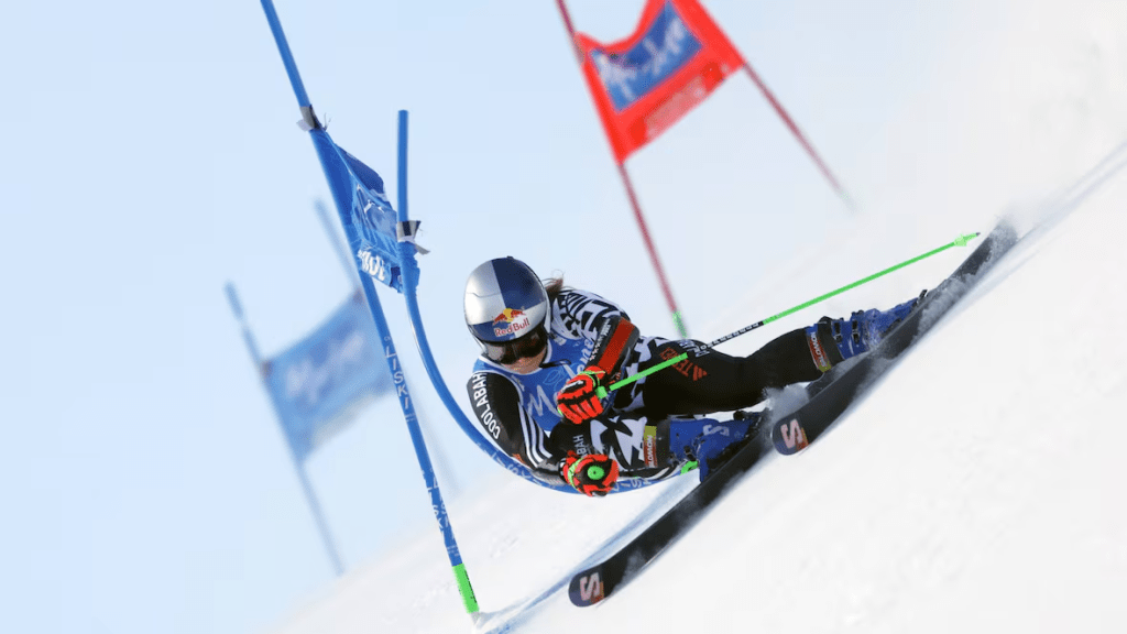 Télies időjárás várta a mezőnyt kedd délelőtt. Reggel még gyengén havazott is, de a verseny rajtjára kissé kitisztult még az ég is. Az utóbbi napokban próbálták jegesíteni a pályát, de összességében nem volt túlságosan kemény a hó. Az első futam pályáját kanadai edző tűzte, nem túl bonyolultra, igen haladós, egyenes vonalvezetéssel. A feltűzött 45 kapuból négy is banánkapu volt, azaz ívváltást sem igényelt. A sízők az interjúban már-már szuper-G-re hajazónak írták le a nyomvonalat. A kanadaiak egyébként Cortina után az olaszokkal edzettek együtt, így valamelyest már megtanulhatták a kanadai mester trükkjeit. A pálya kulcspontja a középen található meredek rész volt, a nagyobb különbségeket előzetesen ott várhattuk. A rajtlistáról két fontosabb hiányzót emelhettünk ki: Marta Bassino és Katharina Liensberger is betegség miatt hagyta ki a mai versenyt.