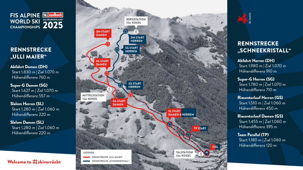 A sportág önjelölt királyainak számító osztrákok természetesen nem először adnak majd otthont a VB-nek (utoljára Schladming volt házigazda 2013-ban), sőt, Saalbach-Hinterglemm is már a második VB-jére készül. 1991-ben rendeztek itt először világbajnokságot. Aki ezen a helyszínen győzni tud, az többek között Vreni Schneider vagy Marc Girardelli nyomdokaiba lép. Remélhetőleg az időjárás ezúttal el fog térni a 34 évvel ezelőttitől, hisz minden idők egyik legnapsütésesebb VB-jeként vonult be a köztudatba – márpedig egy havas sportban ez nem feltétlenül pozitív jelző.