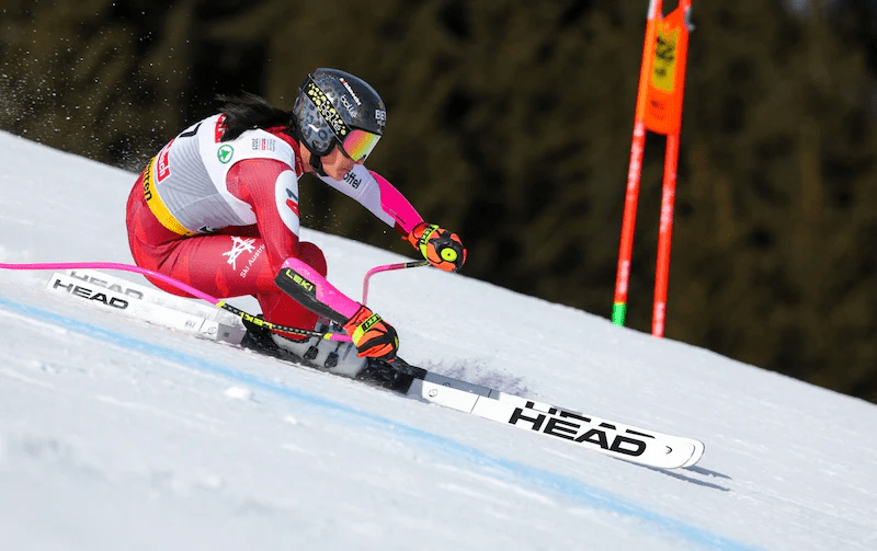 Emma Aicher (6.) már a lesiklóedzéseken láthatóan jó barátságot kötött a pályával. Felül nagyon jól mozgott a német, és bár lent nem tudott a legjobbak tempójával konkurálni, nagy lemaradást nem gyűjtött. A folytatásban érkezett előbb Karen Clément (26.), majd Ilka Štuhec (22.) és Breezy Johnson, de egyikük sem volt veszélyes a legjobbakra. Valerie Grenier menete nem éppen volt tiszta, már ameddig versenyben volt. Kaputévesztés miatt ugyanis már a célig sem jutott el. Elvedine Muzaferija (27.) sokat küzdött az ívekért, aminek főleg az órán látta kárát.