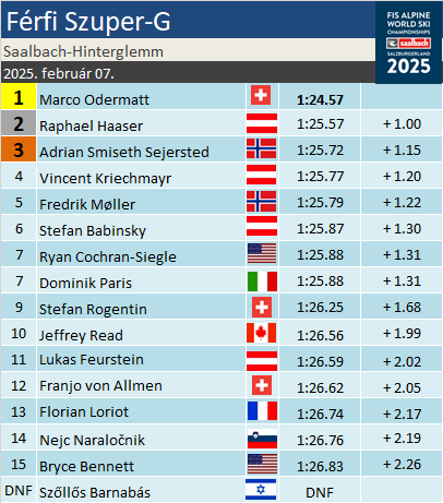 Raphael Haaser révén újabb éremmel gazdagodtak a házigazdák. Amit már Kitzbühelben kiemeltünk, az továbbra is megsüvegelendő, idén téli sérülést követően állt ismét dobogóra, immár zsinórban a visszatérése utáni két versenyen! Az osztrák 2017-ben a szám junior ezüstérmese volt, amit EK szakági cím, majd tavalyig 3 második hely követte világkupákon, illetve egy szakági harmadik hely, mind szuper-G-ben. Érdekesség, hogy junior- és felnőtt VB-n, ileltve világkupán is csak második helyei vannak, győzelem, illetve harmadik hely egy sem. Courchevelben kombinációban viszont már szerzett egy bronzérmet. Nem mellesleg tegnap nagyot bukó testvérét, Ricarda Haasert épp ma műtötték, minden bizonnyal neki is dedikálta ezüstérmét. Az, hogy az osztrákok milyen jól hegyezték a formájukat a világbajnokságra, jelzi, hogy a legjobb hatban hárman végeztek és a negyedik Feurstein is 11. lett.