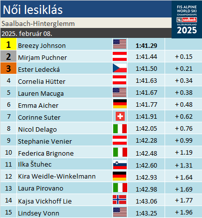 Az elmúlt hat vb-n ötödik alkalommal szerzett ezüstérmet osztrák lesikló. A pekingi olimpia második helyezettje, Mirjam Puchner nem volt különösebben meggyőző ezen a télen, nemhiába, csak edzéseredményei alapján nyert beválogatást a keretbe. Igaz, mint írtunk róla, a gyakorlások remekül sikerültek a számára, a 180 centiméterével a mezőny egyik legmagasabb sízője szemlátomást jól megélt az Ulli Maier- lejtőn. Noha kétszer győzött a Világkupában, azok kicsúszott eredmények voltak, az előző három télen azonban kétségkívül helyet követelt magának a szűk elitben.