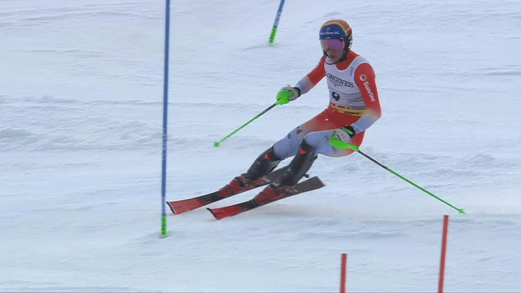 Clément Noël volt papíron a legjobb formában lévő szlalomos a mezőnyben. Teljes gázzal indított, egytizedes előnye mégis hátrányba fordult, majd jött ez korán vett kék stangli, közvetlenül a második meredek elején. Hullottak a fiúk, a speciálszlalom mellett eltörpülő relevanciával bíró kombiban Daniel Yule is mert kockázatot vállalni. Ésszerűtlenül sokat, még a meredek előtt rátrappolt a stanglira. A svájciak közül csak ő és Murisier szomorkodtak. A rajtlista ezen régiójában tényleg nagyon sűrűn szerepeltek a nevek, Steven Amiez (12.) kapott előnye se sokkal volt több egy tizednél. Már fent elszórt mindent, a ritmust pedig hiába kereste a későbbiekben, fokozatosan esett szét teljesen mozgása. A dobogó közeléből is elkerült az utolsó francia egység.