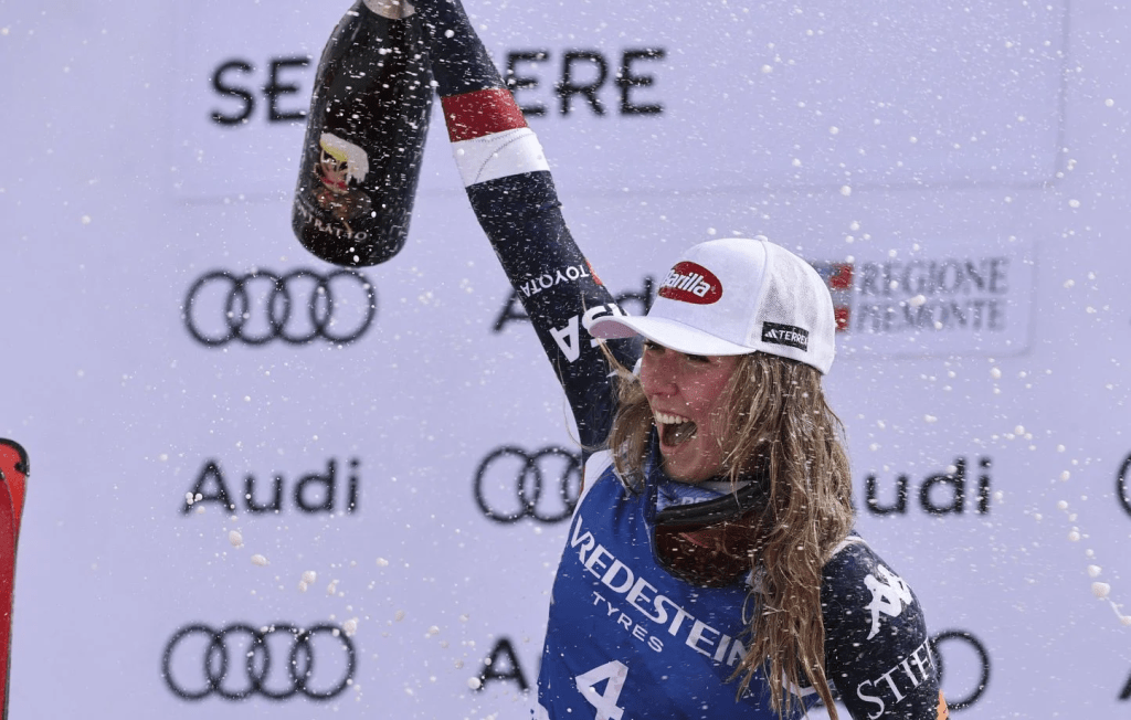 Mikaela Shiffrin a romló délutáni körülmények ellenére is sérülése előtti önmagát idézve győzött Sestriere-ben, amivel történelmi, 100. világkupa-sikerét aratta! Az amerikai délelőtt még csak egy tizeddel előzte meg Zrinka Ljutićot, délután viszont már jelentősen növelte előnyét. A harmadik helyet egy másik amerikai, Paula Moltzan szerezte meg, átugorva a délelőtti harmadikat, Katharina Liensbergert. Ha nincs a Shiffrin-féle jubilálás, minden bizonnyal nagyobb figyelmet kapott volna Cornelia Öhlund, aki 18 helyet javítva az 5. helyet szerezte meg.