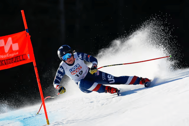 Bár a nőkénél kevésbé ritka az átjárás a technikai és gyorsasági számok közt, Emma Aicher szinte egy korábbi kor sízője: bár még csak 22 éves, már pár szezon óta szinte minden szakágban stabil pontszerző. A szlalom után hamar felvette a palettára a gyors számokat, tavaly óta pedig már óriásban is pontokat gyűjt. Lesiklásban a világbajnokságon 6. helyet szerzett, de idén a világkupában még nem volt pontja. Mai második helye karrierje első VK-dobogója, 11. top10-es helyezése, és így Gisin mellett ő mindössze idén a második síző, aki minden szakágban pontot tudott szerezni. Sokoldalúságát jelzi, hogy egy hete Sestriereben még szlalomban volt 6. Saalbach világbajnoka, Breezy Johnson karrierje 8. dobogóját szerezte, mindegyiket lesiklásban. Világbajnoki aranyérme ellenére győznie azonban még egyszer sem sikerült neki a világkupán. Több mint három év után tért vissza ismét a dobogóra.