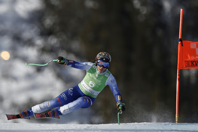 A legjobbak sorát rögtön az egyik legnagyobb esélyes, Federica Brignone (1.) következett. Felül nagy tempót vállalt, majd a trükkösebb kanyarokban mindezt a lendületet jó ívvezetéssel együtt tudta átmenteni. A „Parablociában” viszont lecsúszott, így azért izgulhatott még, hogy elegendő lesz-e ez a végső sikerhez. Lauren Macuga (12.), bár a lenti kanyarban nem hibázott akkorát, mint Brignone, tette mindezt úgy, hogy jóval lassabban síelt azon a részen. Így az amerikai is kapott bő 8 tizedet. Elena Curtoni (9.) előnye fent folyamatosan pár tizeddel hízott, látható hiba nélkül, így bár Brignonét megelőzni nem tudta, a pillanatnyi második helyet megszerezte. Cornelia Hütter (23.) felsőteste kicsavarodott a lejtő jobbratartó szakaszánál, amit csak hatalmas fékezés árán tudott korrigálni. Kár érte, ezt a szektort leszámítva remekül síelt az osztrák.