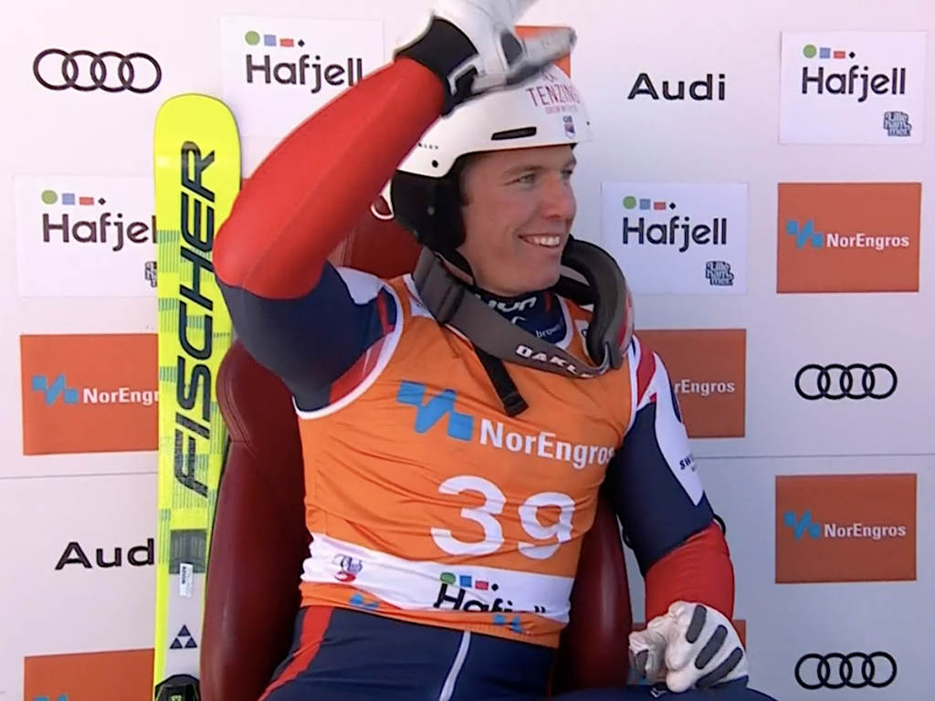 Schladmingban a német pályatűzésből nem tudott profitálni Linus Straßer (11.), és bár ezúttal nem a győzelem volt a tét, most sem sikerült teljes egészében kihasználnia mindezt. 75 százados előnyt sem tudott megőrizni, különösen a laposon látott nehézségei révén. Muffat-Jeandet-t azért leszorította a pillanatnyi dobogóról. Tanguy Nef (8.) sokkal magabiztosabb sízést mutatott, a kádasodó pályán sem használt túl sok élt, így visszavette a svájciaknak a vezetést. Timon Haugan (4.) erre is rá tudott tenni egy lapáttal! Fent tűpontosan síelte a tökéletes íveket, és a laposabb részre is bőven maradt a lendületéből. Hattizedes előnye birtokában a dobogó sem volt elképzelhetetlen.