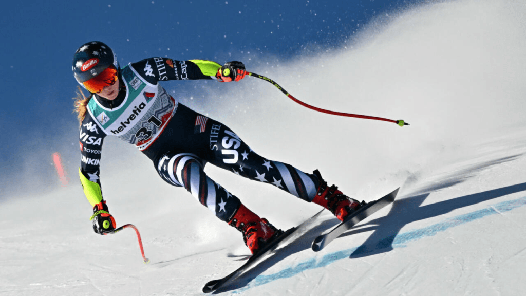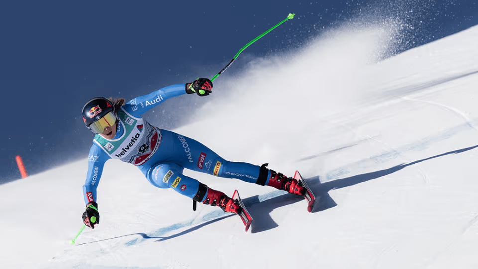 Sofia Goggia (3.) menete távol volt a fölényestől. Nem uralta a léceit, ami csak részben tudható be az őrült tempónak. Középtájon fennakadt egy kék kapun, folytonos egyensúlyi gondokkal küszködött, a záróugratóról jobbra vágódott, ami után ellenmozgásra volt szüksége. Kár, mert tizedes hátrányról átvehette volna a vezetést, így viszont a franciától is kikapott. A tegnapi győztes Emma Aicher korán befejezte szereplését. A felső ugratóra mélyről érkezett, szétcsúsztak lécei, így bal lába előbb fogott talajt. Oldalára dőlve esett, nagy baja szerencsére nem esett. Szemre nem ment oly energikusan Lindsey Vonn (4.), mint például Robinson. Sebessége azért több, mint rendben volt, a lapályosabb részen sokat fogott rajta. A záróugrató nem volt makulátlan, messzire repült, és erőlködnie kellett, hogy megfogja. Pár századdal szorult Goggia mögé.