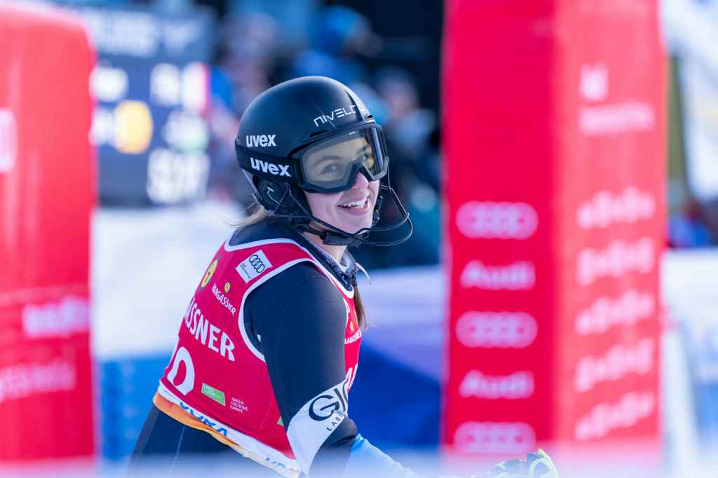 Wendy Holdener (3.) az letörésig hozott olyan miniszektort, amivel erősebbnek mutatkozott. A céllejtőn azért már jóval kövérebb íveket húzott, nem a semmiből jött össze a szűk 8 tizedes időhátrány. Paula Moltzan (4.) további egytizeddel került hátrébb. A kezdés nála is bőven rendben volt, a záró meredeken nyújtott széles ívei zabálták a tizedeket. De alapvetően jó felfogásban viszonyult a ritmusos meredekhez. Camille Rast (1.) azzal az eltökélt szándékkal indult neki a napnak, hogy legyőzi Shiffrint. Az első lépést megtette. A meredeksízése rendkívül pattogósra sikerült, a stanglik tövéből kanyarodott, folytonos mozgással. Egyetlen tizeddel, de előzte az amerikait. Lara Colturi volt a délelőtt másik vezéráldozata. Komolyan megindult ő is, de útja nem tartott sokáig. Egy kék kapu felé fordulva kilökte a lendület a pályáról.